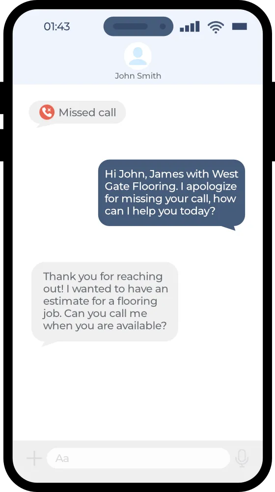 On a job and can't pick up the phone? No problem, we'll fire off a text and get the conversation started for you.