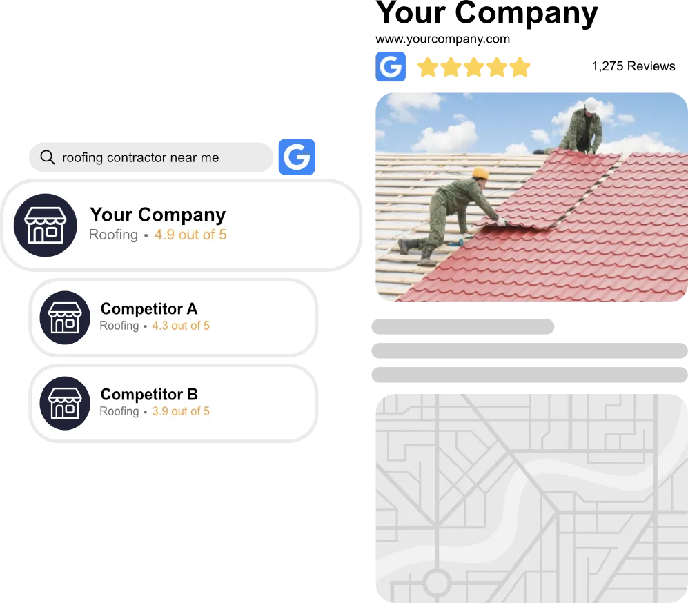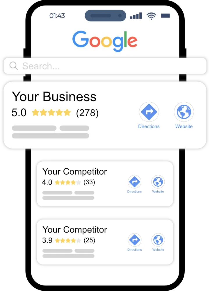 Be the first business customers find when they search in your area. We optimize your online presence so you show up where it matters the most.